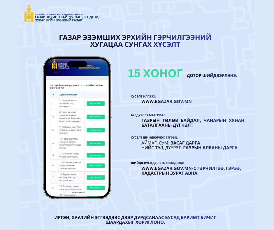 ГАЗАР ЭЗЭМШИХ ЭРХИЙН ГЭРЧИЛГЭЭНИЙ ХУГАЦАА СУНГАХ