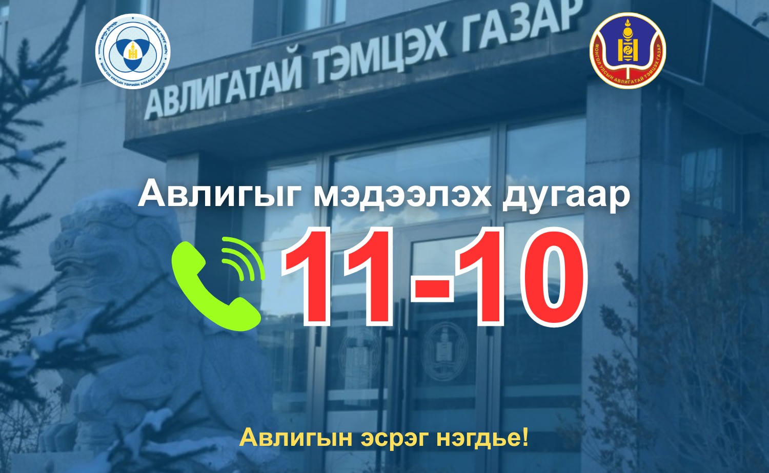 Авлигатай тэмцэх газрын ашиглаж буй 110 тусгай дугаарыг 2026 оны 3 дугаар сарын 1-ний өдрийг хүртэл давхар ажиллуулах бөгөөд дээрх хугацаанаас хойш 110 дугаар хаагдана. Харин 11-10 дугаар ердийн горимоор урьдын адил ажиллах юм. Иймээс иргэн, албан хаагчид авлигыг мэдээлэх шаардлагатай үед 11-10 тусгай дугаарт холбогдох боломжтой.
